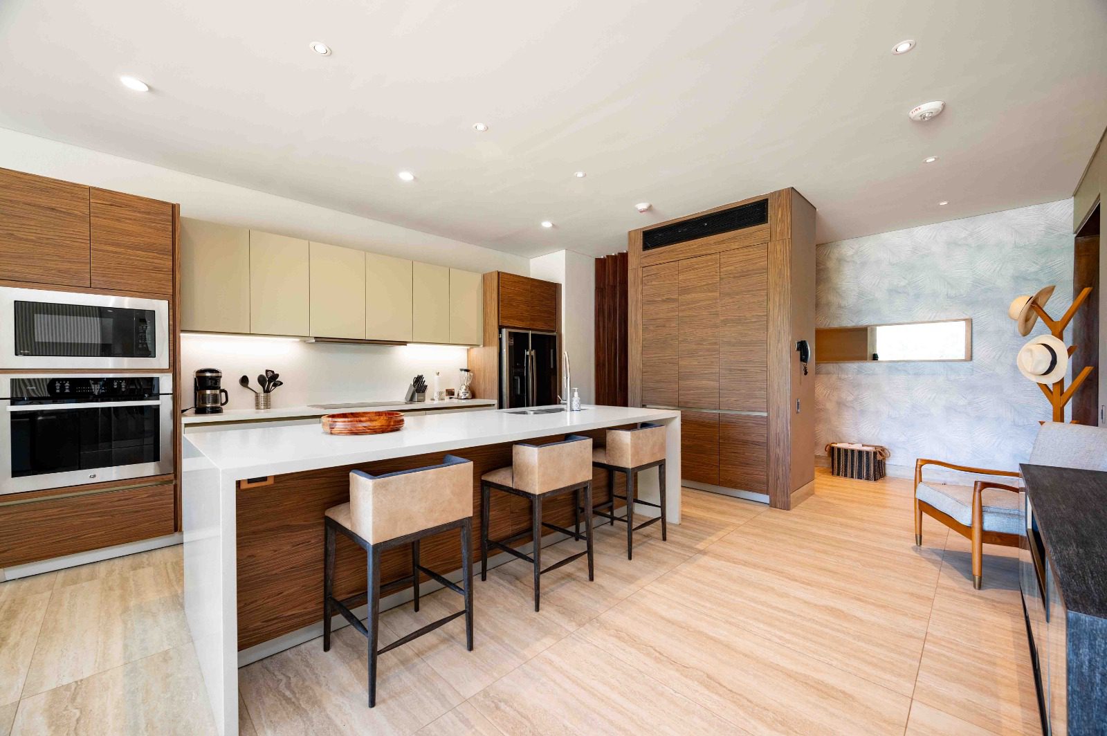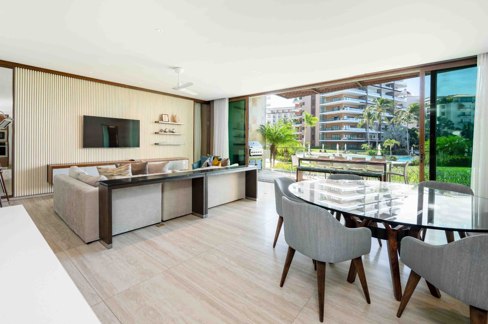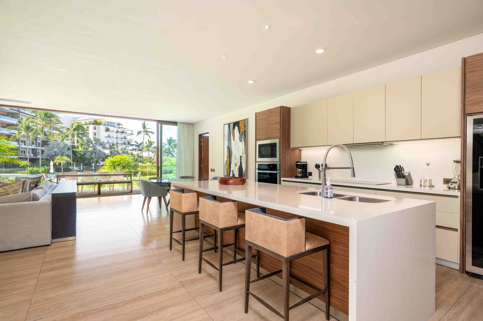 Para los amantes de las plantas bajas, este es un hermoso departamento ubicado en esquina de la Torre 4 que ofrece vistas a las espectaculares albercas infinity, las cuales están frente a la mejor playa de la bahía. Cuenta con amplios techos de 3.30m de alto, amplias terrazas en área común y master, además de la elegante carpintería de maple. La recámara principal con vista a amenidades, dos recamaras posteriores con vista al golfito y una recamara extra acondicionada y remodelada.