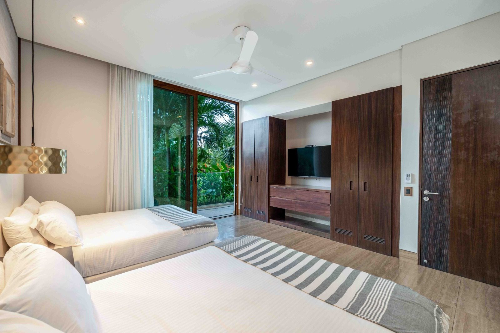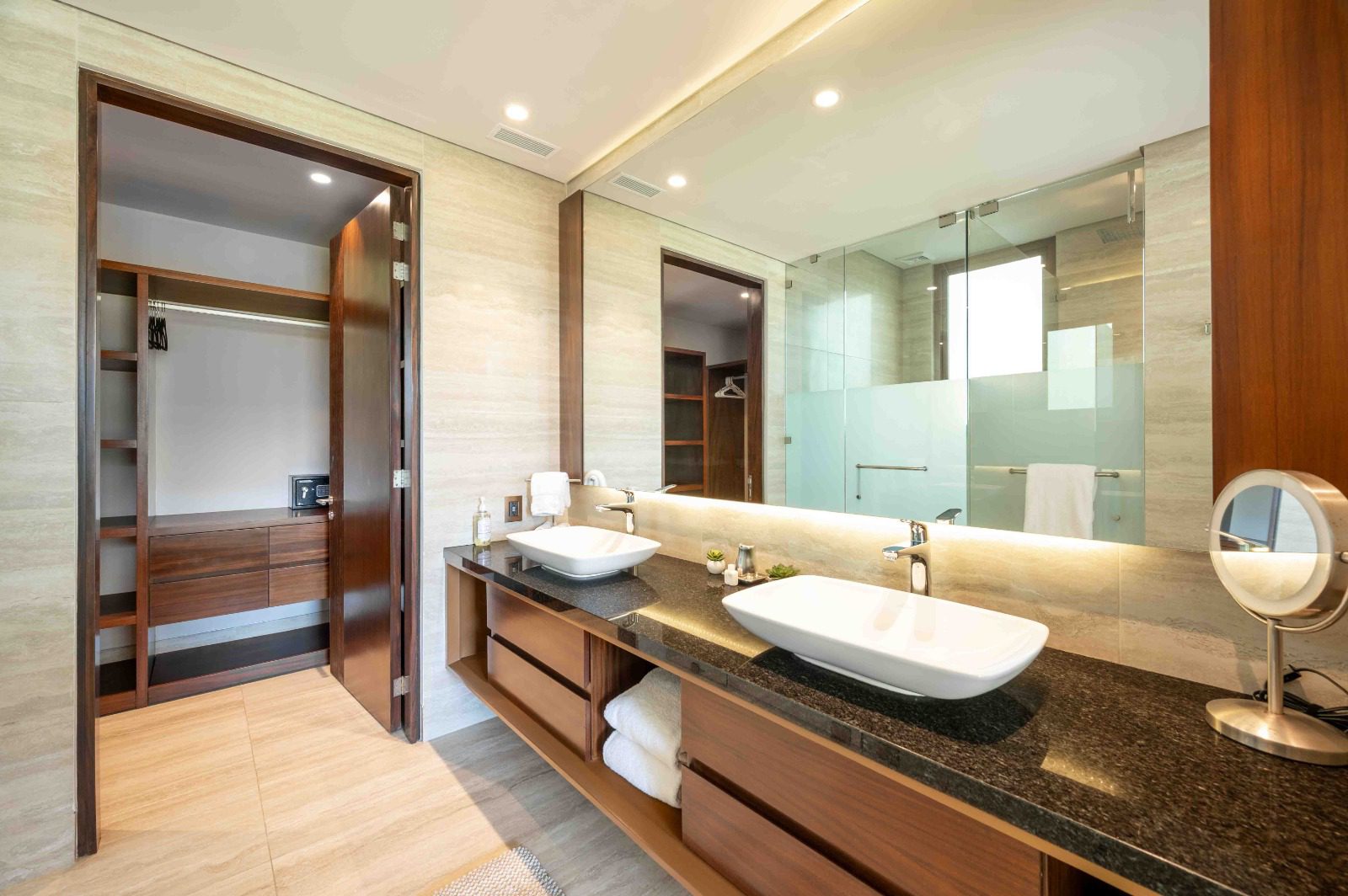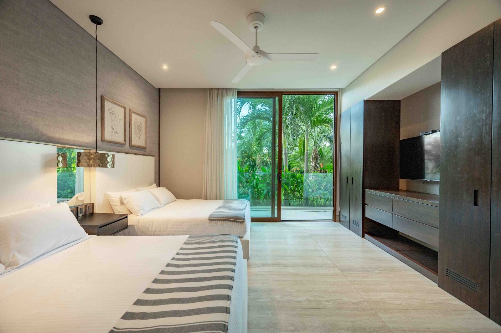 Para los amantes de las plantas bajas, este es un hermoso departamento ubicado en esquina de la Torre 4 que ofrece vistas a las espectaculares albercas infinity, las cuales están frente a la mejor playa de la bahía. Cuenta con amplios techos de 3.30m de alto, amplias terrazas en área común y master, además de la elegante carpintería de maple. La recámara principal con vista a amenidades, dos recamaras posteriores con vista al golfito y una recamara extra acondicionada y remodelada.